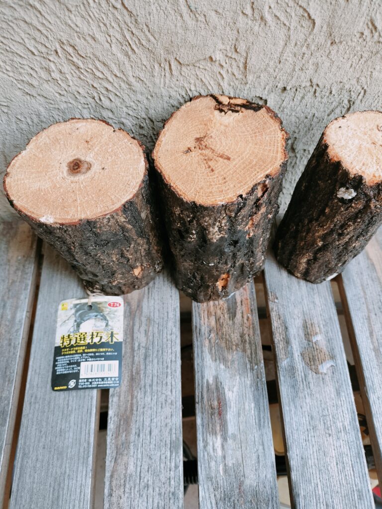 作業をする前段階として、産卵木を水を張ったバケツの中へ浸しました。